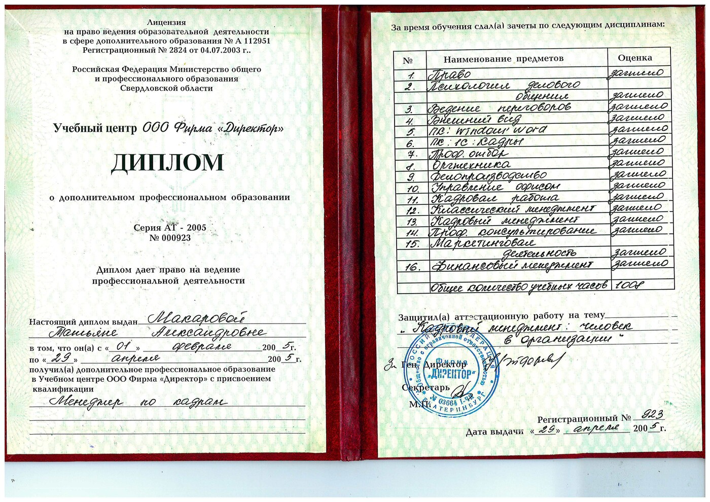 Учебный центр «Директор» «Менеджер по кадрам» «Управления персоналом» «Финансовый менеджмент»